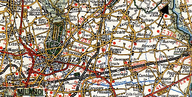autostrada (motorway) Milano - Venezia (A4) - exit Cavenago/Cambiago. At the exit of the toll station, turn left following indications to Busnago - Roncello, at traffic light go straight. At Roncello follow sign-post to Busnago, enter the town and continue to Cornate . Once in Cornate, turn right at second traffic light, where you'll find the sign-post to Porto d'Adda.