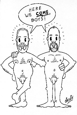 It's a real pleasure to show to our Internet friends the drawings of Orson, a beautiful bear from Naples living in Milan with his (just as beautiful) bear lover! The images you'll find here give a description of some bear couples with a touch of irony that makes them even more pleasant. Don't you agree? You can contact Orson by writing to : Orson - C.P. 15028 - 20148 Milano - Italy