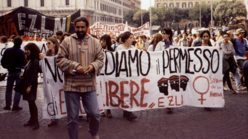 La comandante... Erica con lo striscione d'apertura e lo spezzone de La Strada