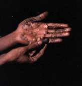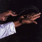 accumulando resina sui palmi fino a che non diventa spessa abbastanza per