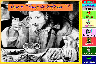 Chiedamo collaborazione per un possibile progetto ipertestuale sull'arte da trattoria. L'arte da trattoria e' quella che si vede alle pareti delle pizzerie a buon mercato, dei barbieri di paese. Sono i quadri (solitamente olio su tela) che si comprano nei mobilifici, ai grandi magazzini. Il loro valore e' il loro prezzo stabilito secondo criteri come la dimensione, il tipo di cornice, il fatto che siano dipinti a mano o stampati. L'arte da trattoria esibisce il carattere di merce intrinseco ad ogni valutazione estetica interna al sistema dell'arte. Il commercio di arte da trattoria e' un paradigma del mercato dell'arte, della sua capacita' di coniugare assolutismo dei valori estetici e circolazione economica della merce. Servono quindi per la preparazione di questo ipertesto scritti, immagini, slogan relativi ai molteplici aspetti del tema. Particolarmente slogan. Uno slogan riassume, semplifica, brutalizza la complessita' delle analisi e delle ideologie. Uno slogan e' una elaborazione critica da trattoria. E' stata scelta la forma ipertestuale perche' questa realizza (almeno virtualmente) ampie possibilita' di scambio a-gerarchico e orizzontale tra i partecipanti.