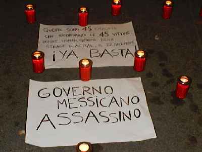 9 gennaio 1998 ore 17 E' in corso in qusto momento l'accerchiamento dell'ambasciata messicana a Roma Siamo piazzati a Piazza Salerno. Denunciamo il massacro di Acteal e le aggressioni contro le comunita' zapatiste nel Chiapas