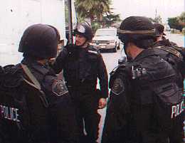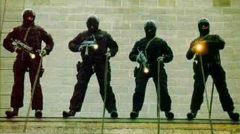 Alcune immagini tratte da siti web SWAT team ed una da quelli di alcuni rivenditori di armi... quando vi parlavamo di azioni alla Sylvester Stallone e di esaltazione militaresca e di ninja style non stavamo esagerando. La maggior parte delle immagini sono pubblicate da Dipartimenti di Polizia di piccole citta' USA.