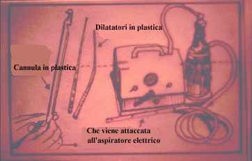 Inserito il tubicino nell'utero attraverso il collo aperto, la macchina viene messa in funzione e