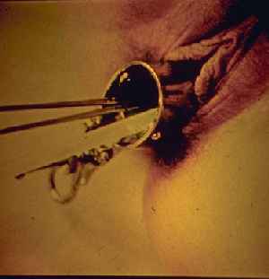 La zona vaginale viene pulita a fondo con una soluzione antisettica; non è necessario radere