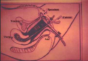 Metodo: viene dilatato il collo dell'utero come per l'aspirazione, ma solitamente in misura maggiore. Dopo la dilatazione il medico stacca il rivestimento uterino con la "curette," un anello metallico con un manico lungo e sottile, e rimuove il tessuto fetale col forcipe.